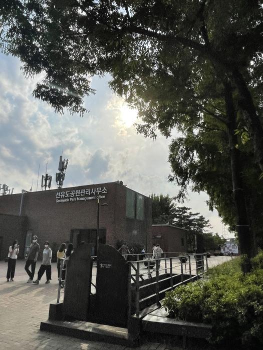 선유도공원에서 점점 해가 어두워졌다. 선유도공원에는 돗자리 펴고 앉아있어도 좋고 산책을 해도 좋다. 여의도한강공원보다 사람이 많지 않고 더 가족위주로 오는 공간이다. 그늘도 많아서 편히 쉬기 좋은 공원이다.